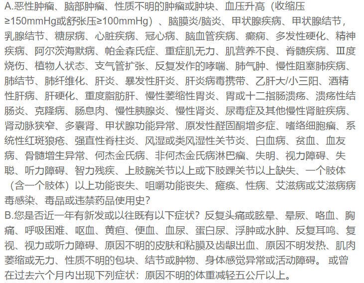 3.是否目前患有或曾经患有下列疾病或存在如下症状?