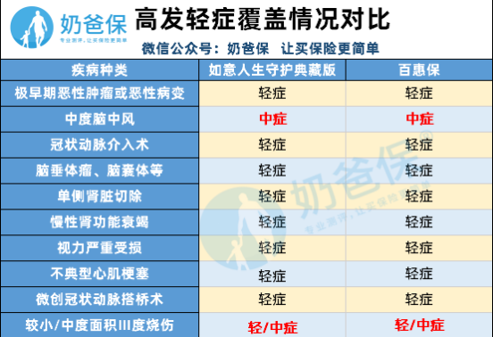 如意人生守护典藏版与百惠保重大疾病保险的高发轻症的覆盖情况基本一致的,就是赔付比例是如意人生守护典藏版更有优势的。