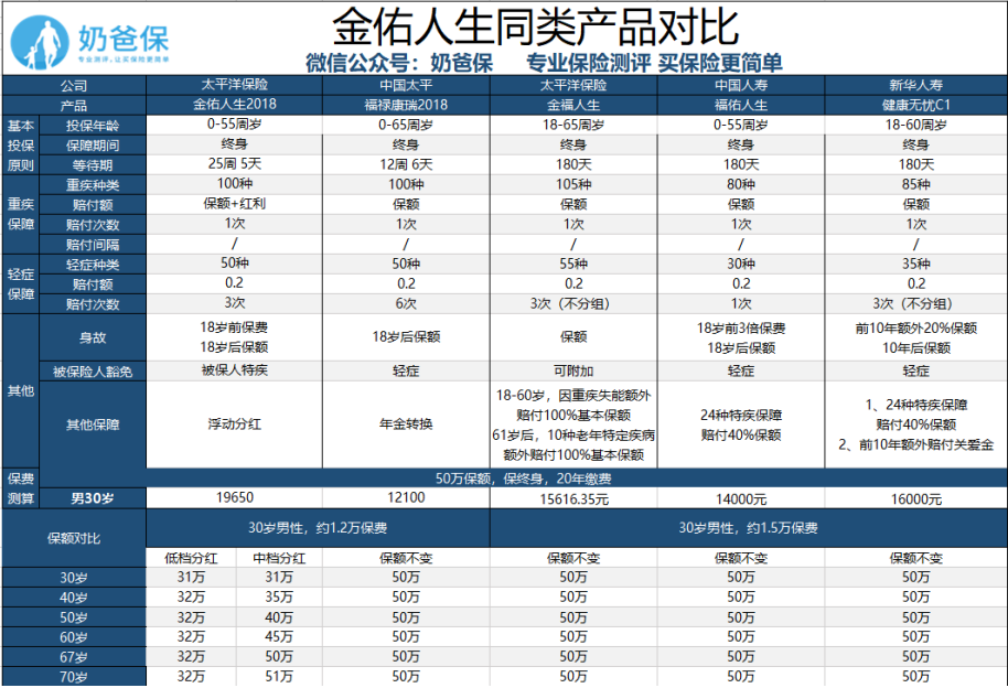 作为太平洋保险的主打产品,金佑人生2018相对比2017等版本确实是不错,可以说是良心升级了,