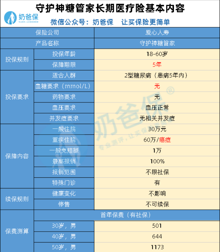 是在奶爸知道的同类型产品里面,守护神糖管家是唯一一款可以5年保证续保的产品,投保规则也相对宽松